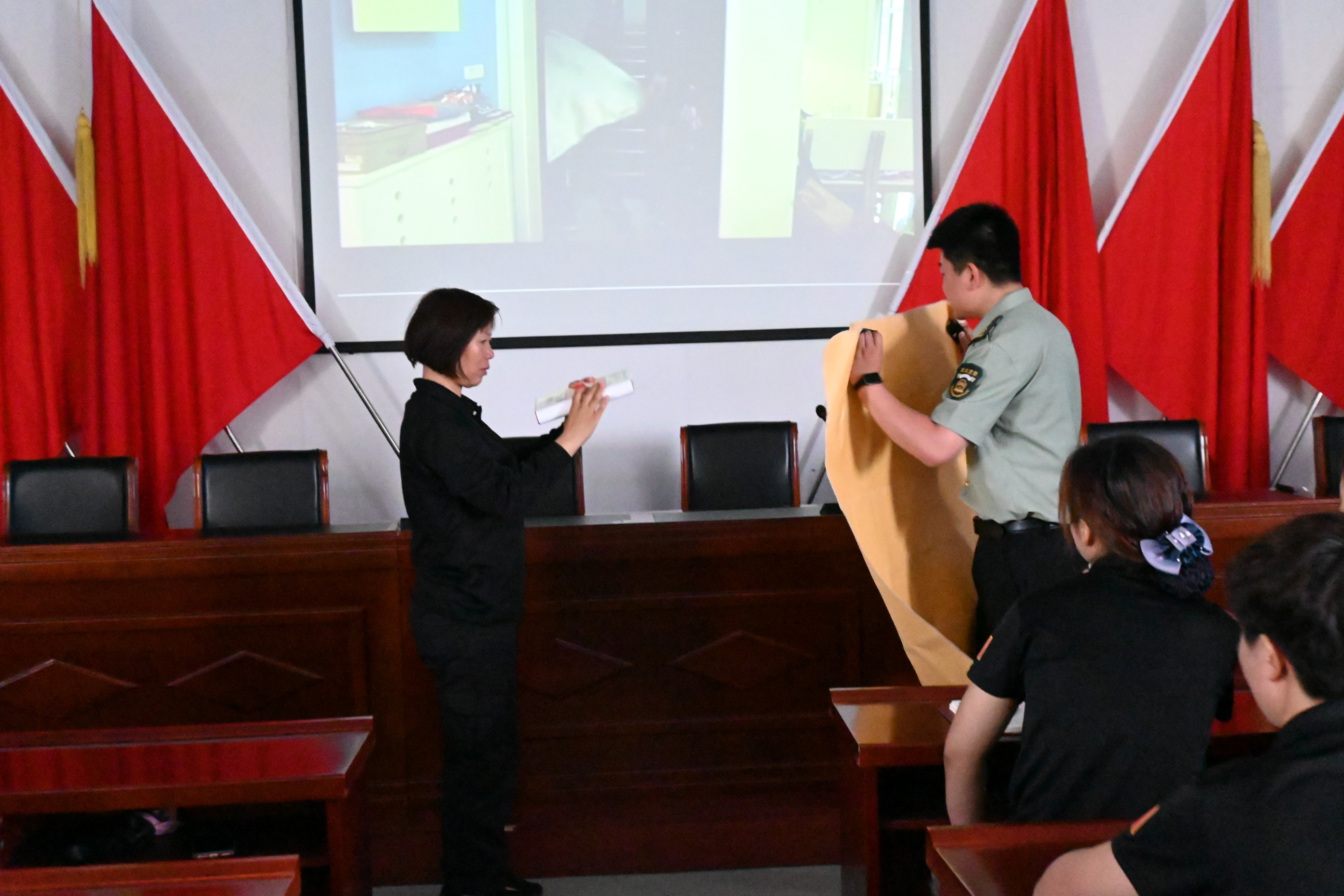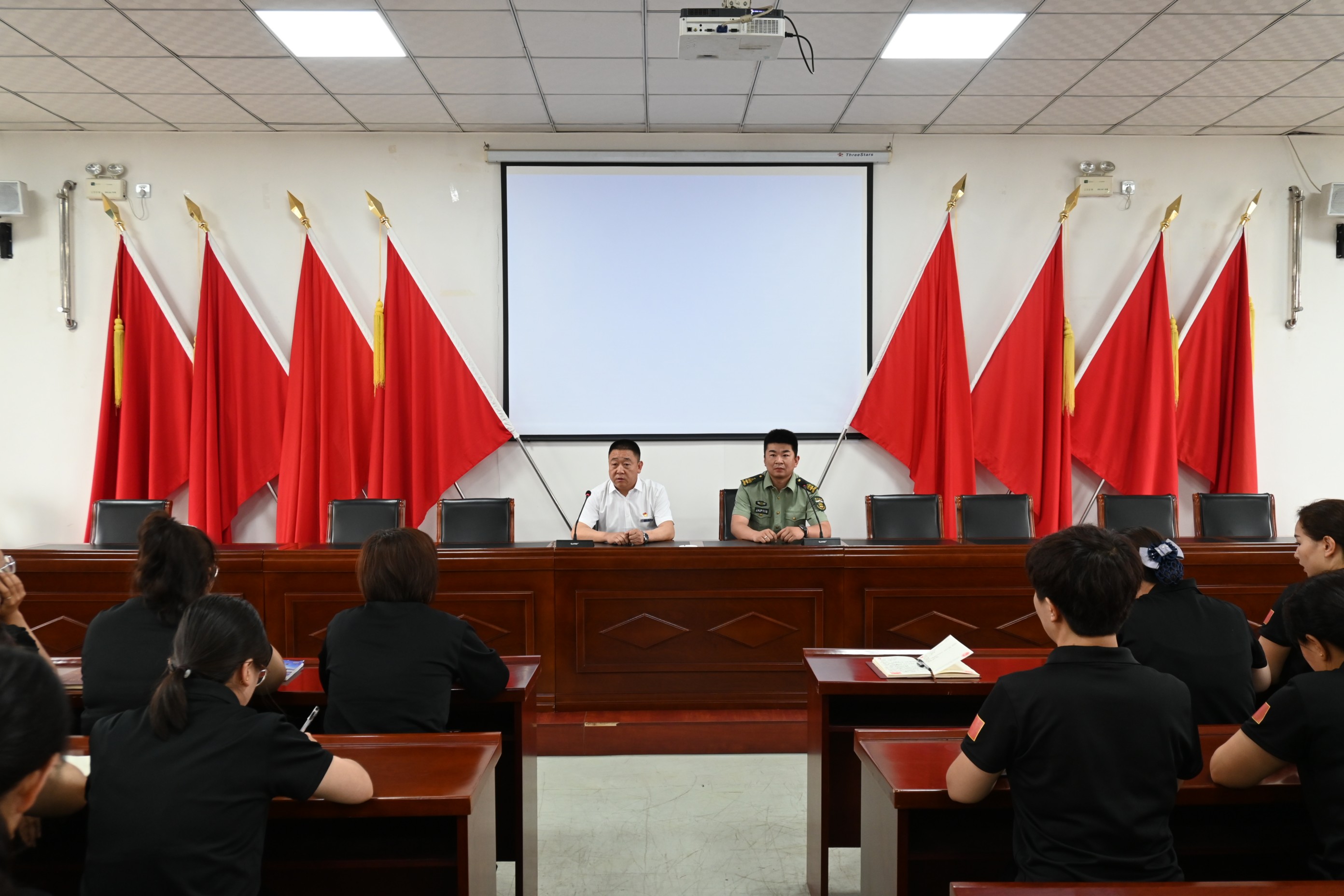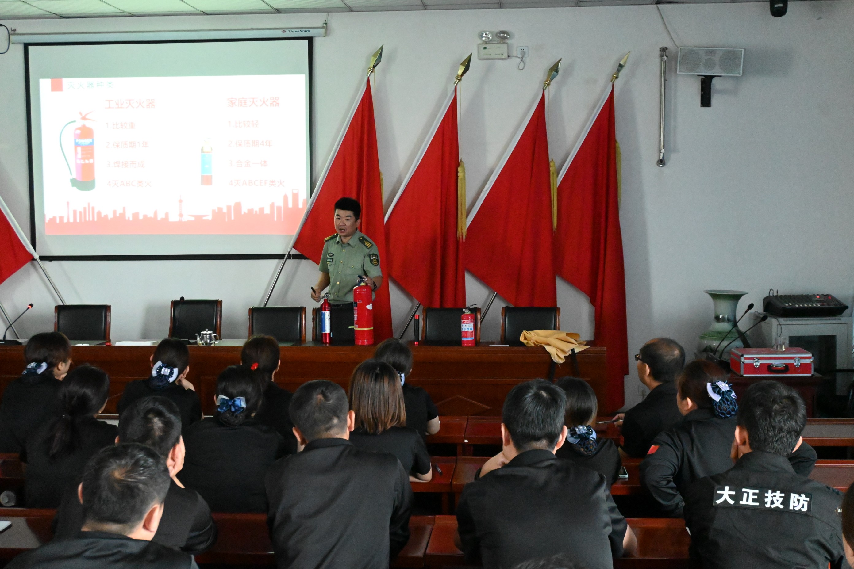 培訓(xùn)課上,張教官從火災(zāi)定義、火災(zāi)種類、滅火工具、防范措施幾方面現(xiàn)場教學,通過視頻播放的方式,以觸目驚心的火災(zāi)案例警示短片,向大家展示了建筑、倉庫、公共場所、車輛、居家等區(qū)域的消防安全隱患,給大家敲響消防安全警鐘。其次是對日常生活中和公共聚集場所的防火安全知識做了詳細的介紹,同時還對滅火器的選擇與使用以及火場應(yīng)急措施與逃生進行了全面的講解。