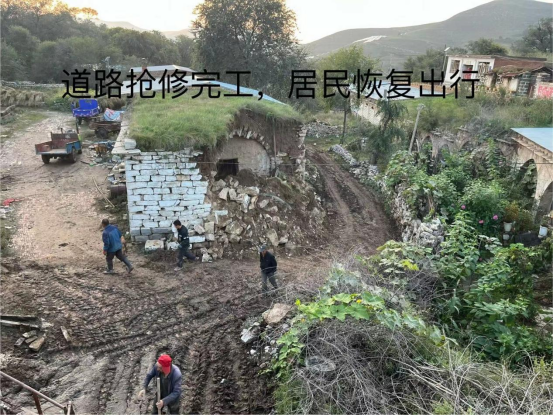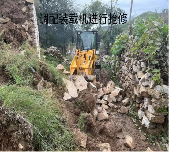 在搶修過程中,工作隊與村民們共同克服了惡劣天氣帶來的困難,裝載機(jī)的操作手精準(zhǔn)地移除了坍塌的土石,而其他人員則協(xié)助清理現(xiàn)場,確保了搶修工作的順利進(jìn)行。經(jīng)過數(shù)小時的緊張勞動,破損的窯洞得到了妥善處置,村民們的生活出行秩序得以恢復(fù)。